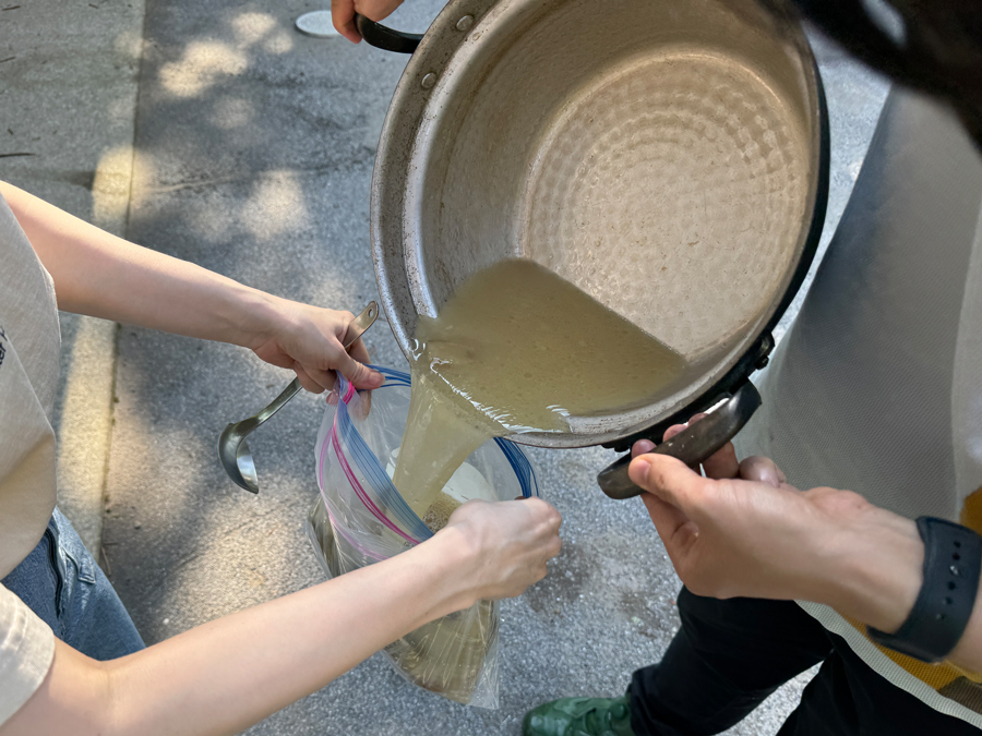 時間もないので鍋に水を当てながら冷やし、粗熱が取れたところでジップロックに移していく。