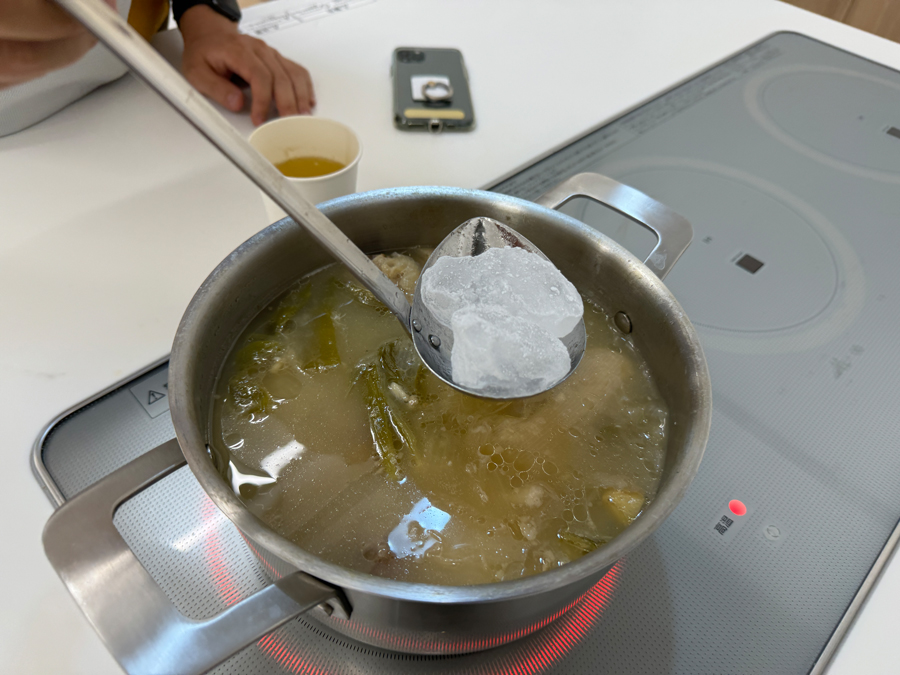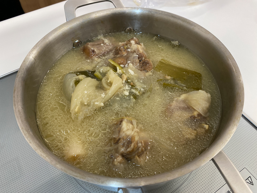 タイムリミットの15時になったので、火から下ろして一旦スープを冷やす。
