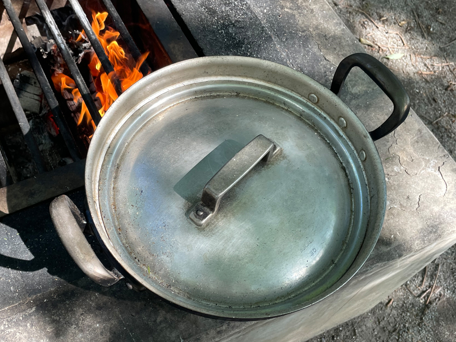 薪を使い果たしたので金槌を代用して水場まで運ぶ