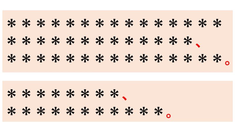 そして、前半の1文には1回も登場しないのに、後半の1文の更に後ろ半分にだけ異常に集中して「・--」が7回も登場します。