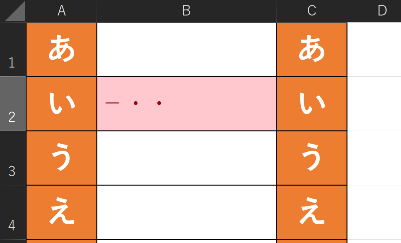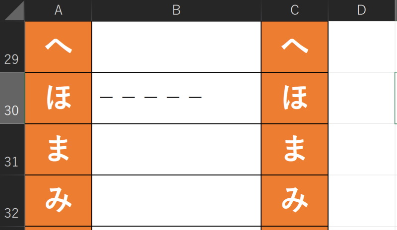 (関数の作り方がヘタクソなのが原因で、左右両側にひらがなが表示されています)