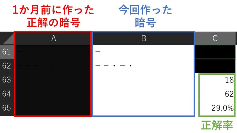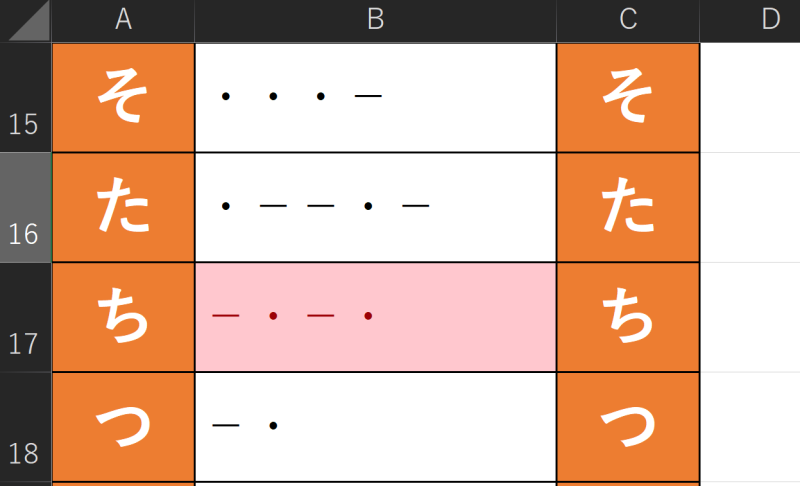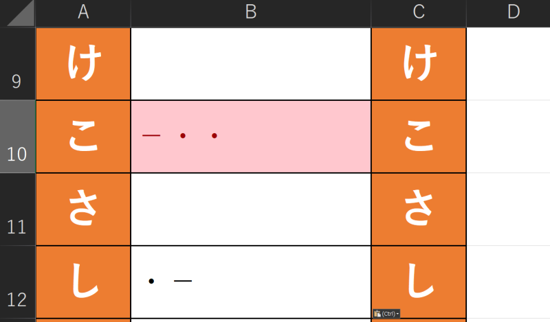 各ひらがなと対応するモールス信号は勿論のこと、どういうルール・どういう感覚法則で埋めていったという方針すらも、全く覚えていませんでした。