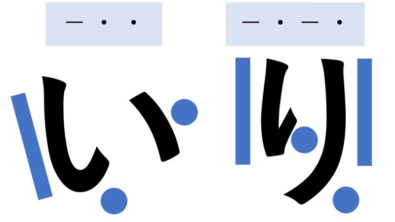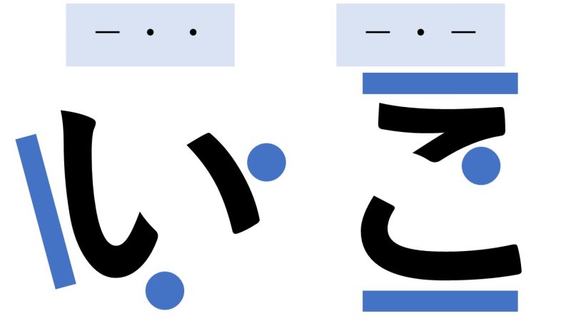「い」の方が最後の画が短いイメージだから、「い」が「-・・」、「こ」は「-・-」でしょう。