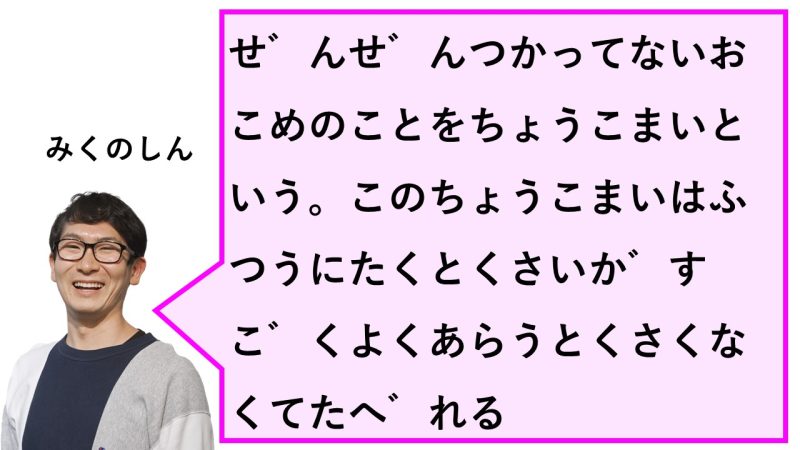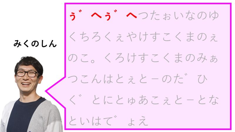 みくのしんさんの文章の冒頭が「ぅ゛へぅ゛へ」になっています。