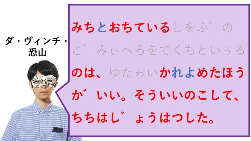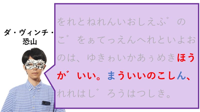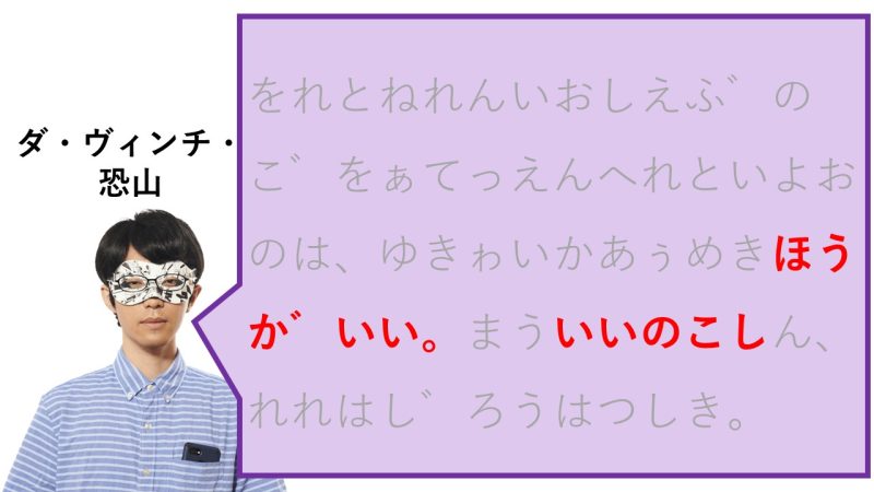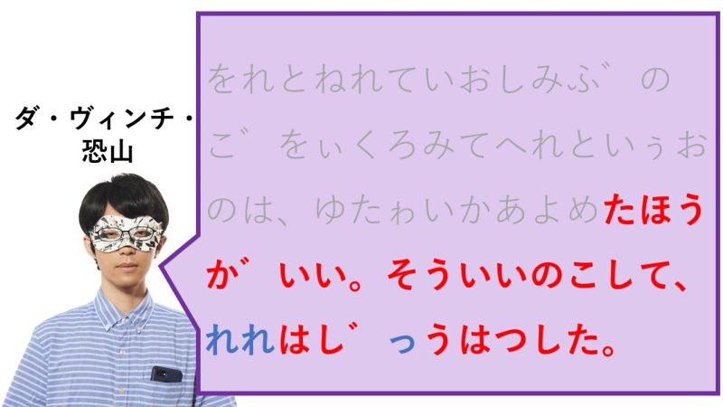 恐山さんの文章は、全体的に文章っぽくなっていて手がかりを発見しやすく、「ほうがいい。」「そういいのこし」が早い段階で見えていたので、とても頼り甲斐がありました。