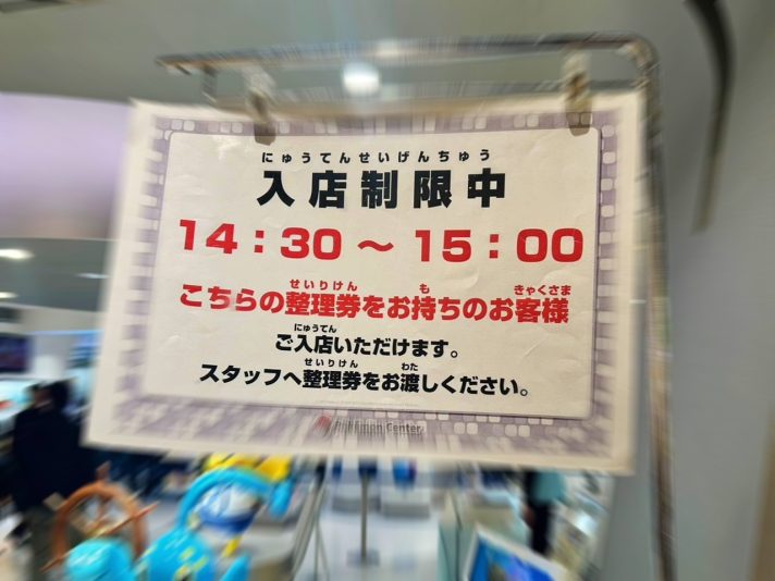 ポケモンセンターでは休日、混雑緩和を目的に入店整理券を配布して時間帯別入場を行っているよう。