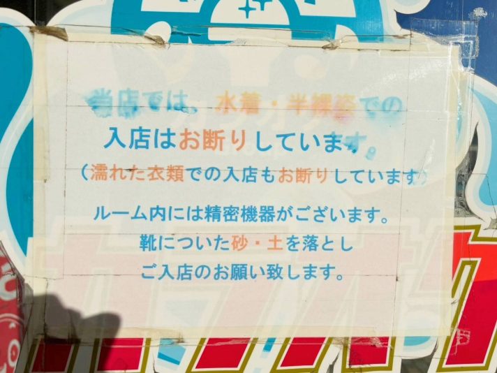 それにお手洗いの張り紙も地域色を感じさせる海辺の背景だったり……