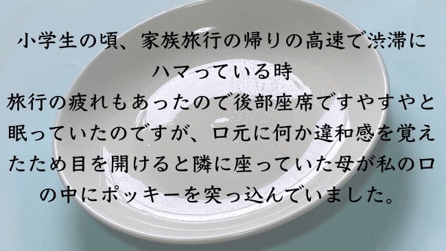 忘れられない母の奇行シリーズ。いやだな、ポッキー見るたびに思い出しそうで。