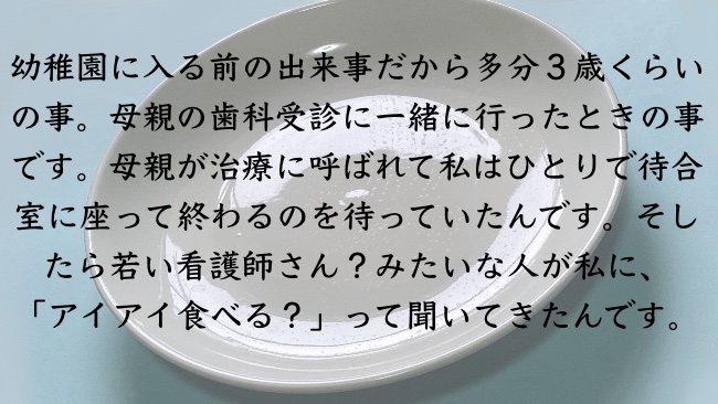 なんだったんだろう。アイスとかじゃないだろうしな。それよりなんでシイタケだと思ったのかが気になる。本当になんでなんだよ。なんだこの記憶。