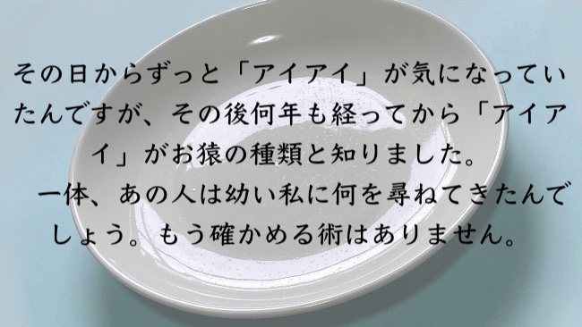 めちゃめちゃ良い。子供なりの説明も、この思い出そのものも、「要らねえ〜」という感じが愛おしい。ぜ〜んぜん忘れてもいい記憶なのに。