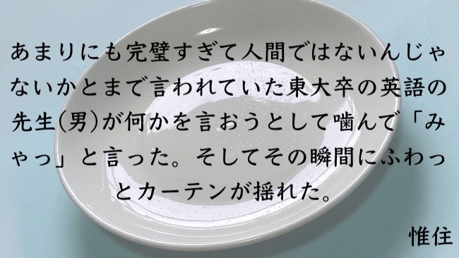 銅像のやつに近い最高さがある。全然そんなことする(思う)必要ないのに、誰にでもなく心の中でだけ強がるの良い。自分の人生の主人公は自分だと言い聞かすためにも時々心の中で強がった方がいいのかもしれない。