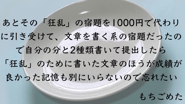 あだ名が「狂乱」だったやつがいたことは一生覚えておこう。良すぎるから。