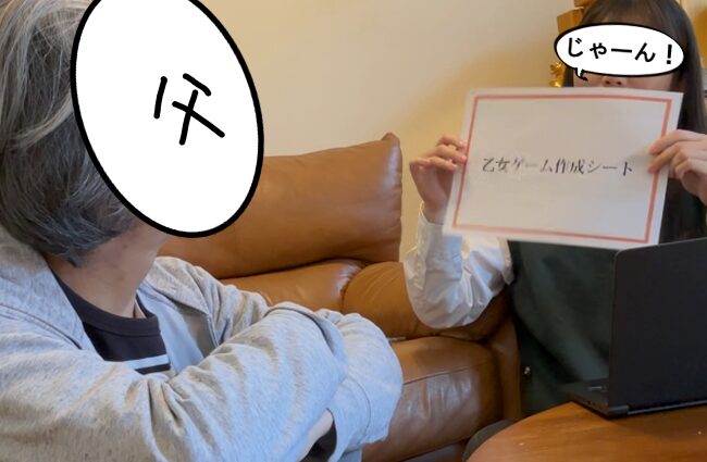 お父さんには、この「乙女ゲーム作成シート」を埋めてもらいます!