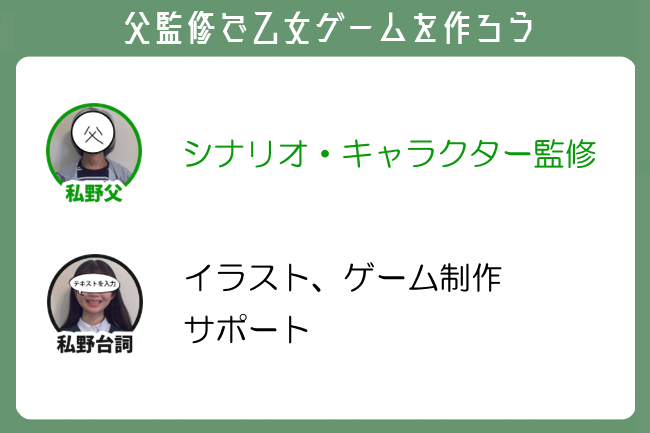 人生経験が豊富であろうお父さんに、乙女ゲームを作ってもらいます。
