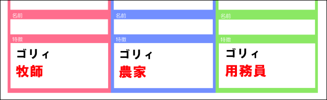 3人のキャラを作ってほしいんだけど、まずはこのページでざっくりと設定を練ろう。