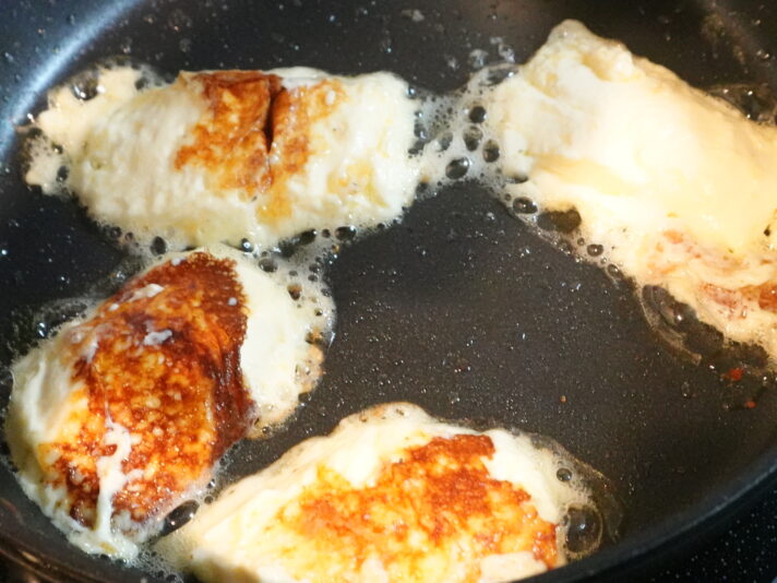 ない理由が分かった。溶けるからか。なんかいい感じに焼き目は付いたけど、どんどん液状になってきた。そっか、チーズだもんね!