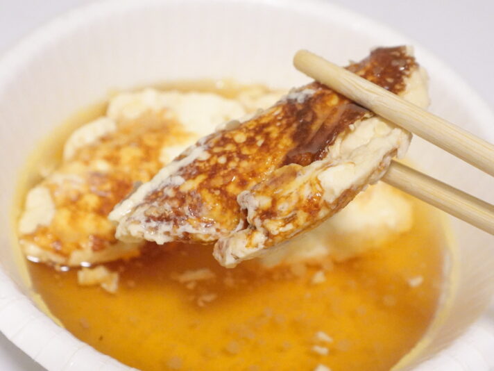 表面は固めでしっとりしてるのに、中はトロトロ。そしてつゆの出汁が染み渡る。チーズのまろやかな風味もどんどん口内に広がっていって、とてもおつまみ力が高いぞ。