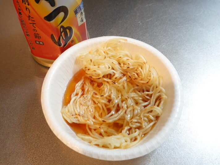 今まで食材を浸していたのはめんつゆ。ならばそうめんの新しい食べ方になるんじゃないでしょうか。夏はそうめんレシピもSNSで流れまくってくるので、一石を投じましょう。