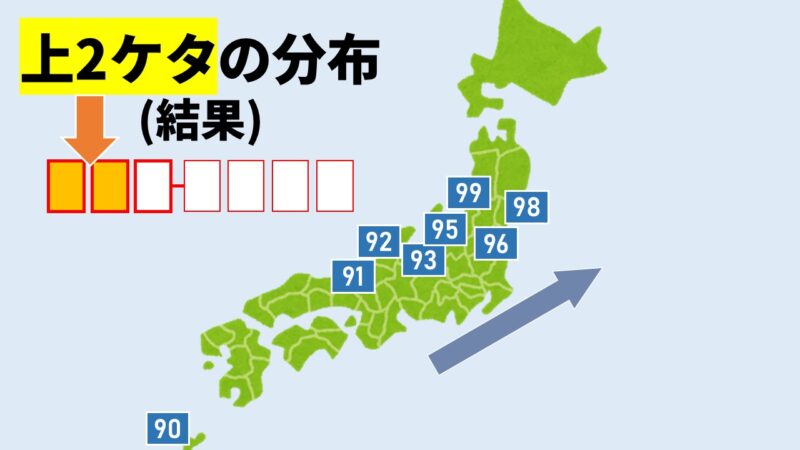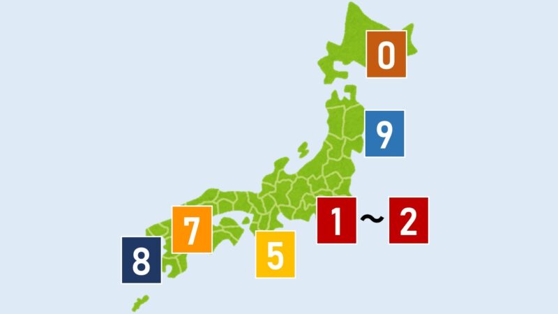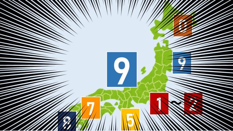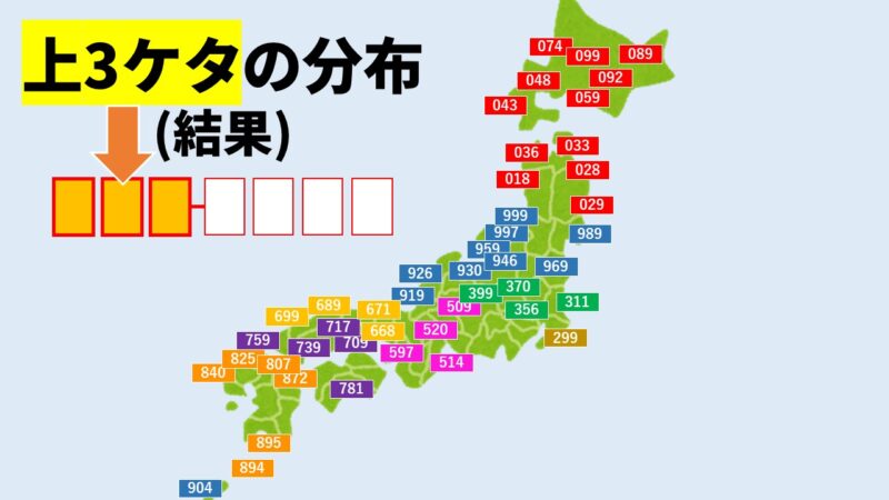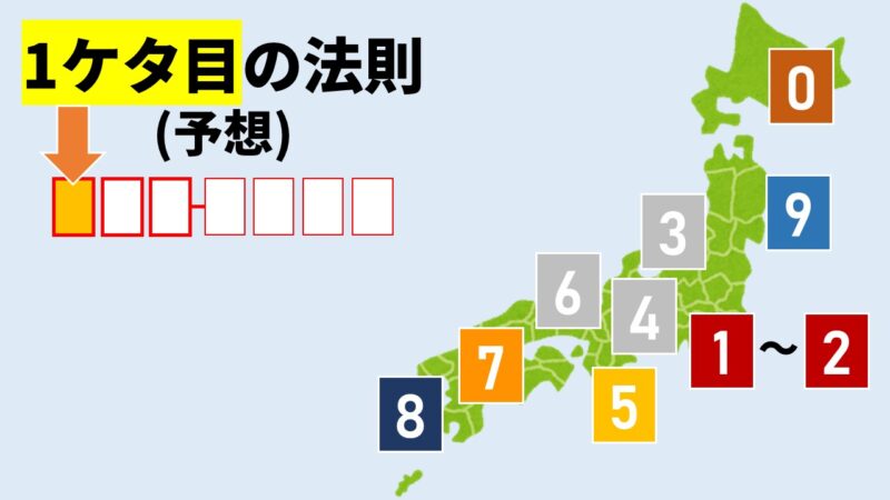 福井県を中部地方と捉えると、三重県・岐阜県と同じ「5」の可能性もありますが、さすがに3・4・6の使い道がなくなってしまうので、北陸地方4県に「4」が割り振られていると考えてみましょう。