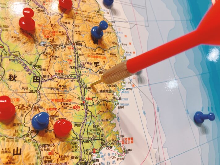 (地図が小さすぎるため、ダーツではなくアプリ上でピンを刺したので投数上はノーカン)