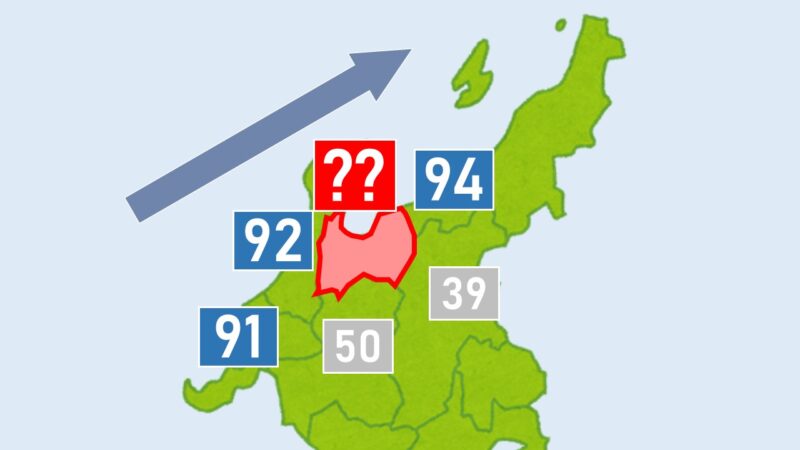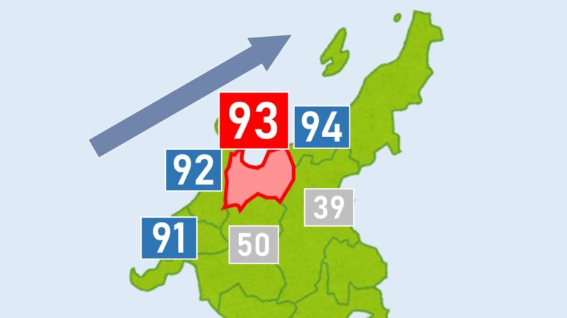例えば富山県の両隣の県がそれぞれ「92」「94」なら、