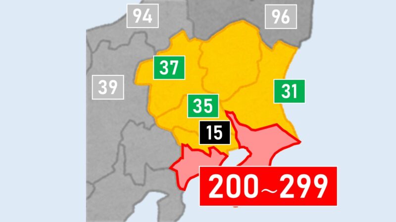 関東地方を出発点にして、南へと順調に数字が進んでいるのがわかります。