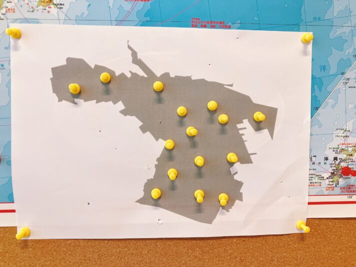 そこそこ土地勘のある自治体の白地図を印刷して、