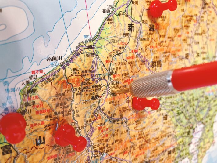 そこで、ここから先はダーツで刺さった場所の更に細かい位置情報を先にGoogleマップでピン留めしつつ、