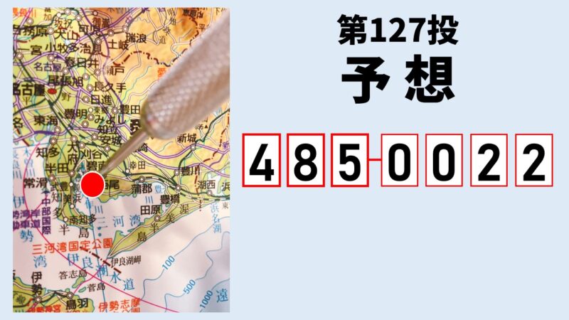 さらに西尾市内でも西小口駅・西尾駅・西尾市役所などややランドマーク多めの平地ゾーンに刺さった。規模の大きいエリアで特に平地だと下4ケタ00スタートがちなので「485-00」と推測。最後2ケタはエリア全体の雰囲気に鑑みて前半に寄せすぎず中盤くらいの番号に設定。