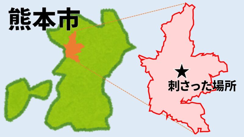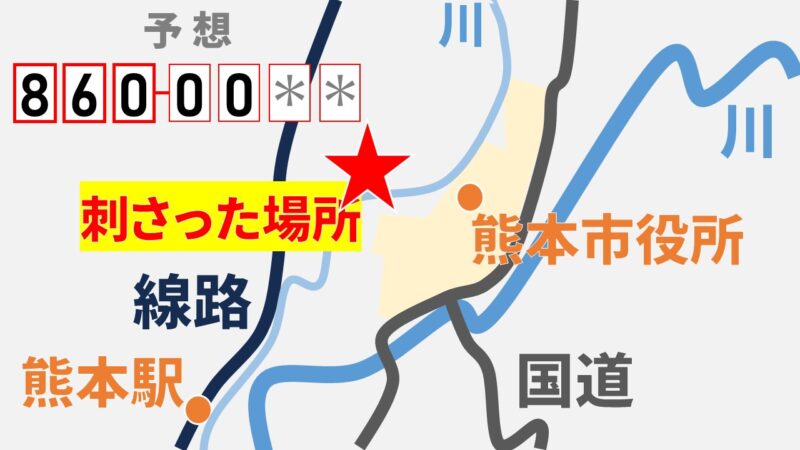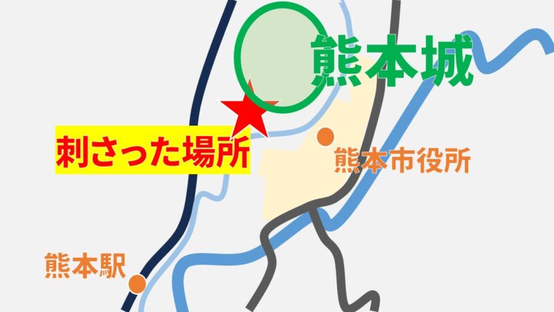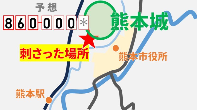 刺さった場所は、県庁所在地かつ政令指定都市である熊本市の中でも、さらにかなり中心部です。新幹線停車駅もあり、市役所もある。市電も走っている。かなりの規模とみて良いでしょう。