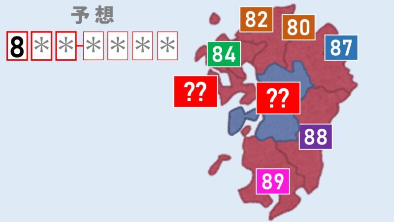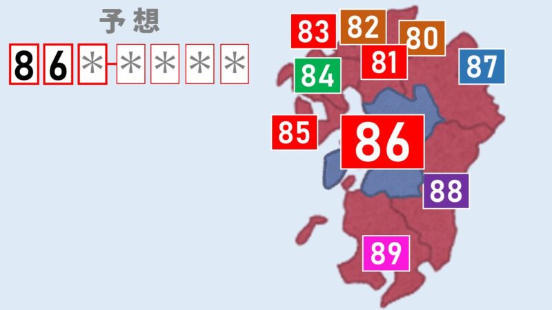 これまでの実績から、九州地方の上1ケタは「8」であることが確実っぽいです。