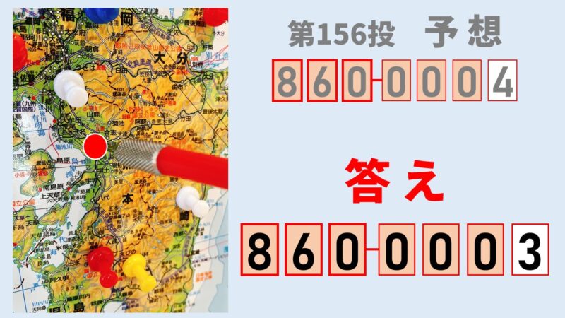 3ケタ目は、県庁所在地(熊本市)の中心部なので「0」で決め打ちたいところですが、やはりここは慎重にいきたい。