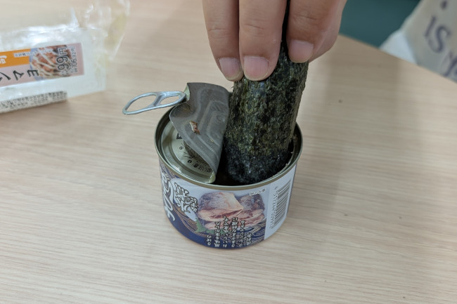 鯖缶の残り汁に、お好みの手巻き寿司を浸して食べる。それだけで、サバの寿司っぽくなります