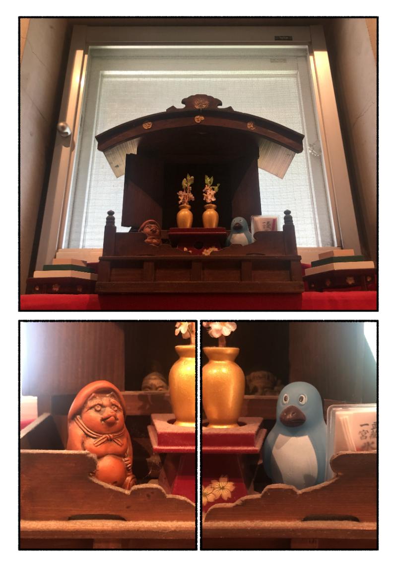 たぬきとペンギンがウチのおもちゃを物色してた