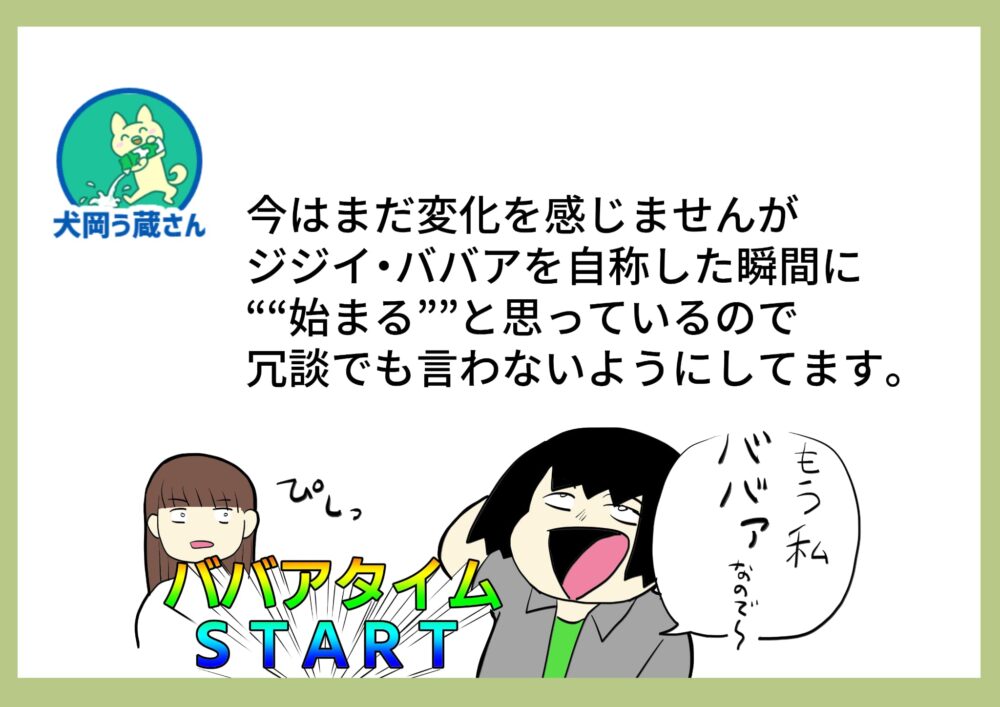 ポロッ言ってしまったらもう自分はそうなってしまう。言霊の力って恐ろしいですね。言われた側も気を使いますし、いいことない…。ジジイババァユーモアはもう「お終い」にしましょう。気を付けます。