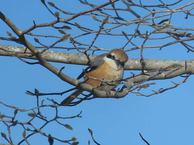 これも冬の写真ですね。モズは通年見られる鳥ですが、こういう鳥でも冬のほうが見つけやすいしきれいな写真も撮れます。