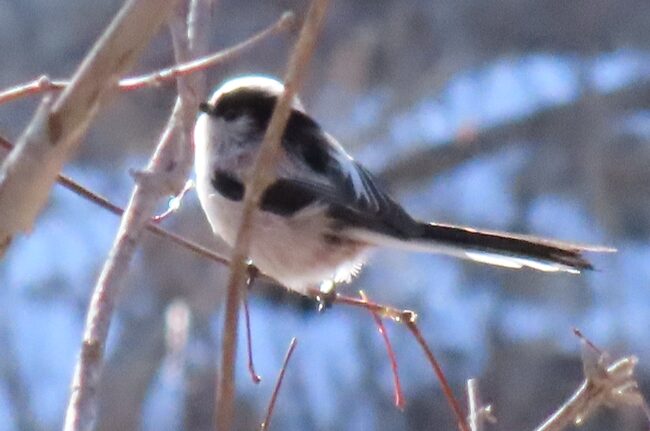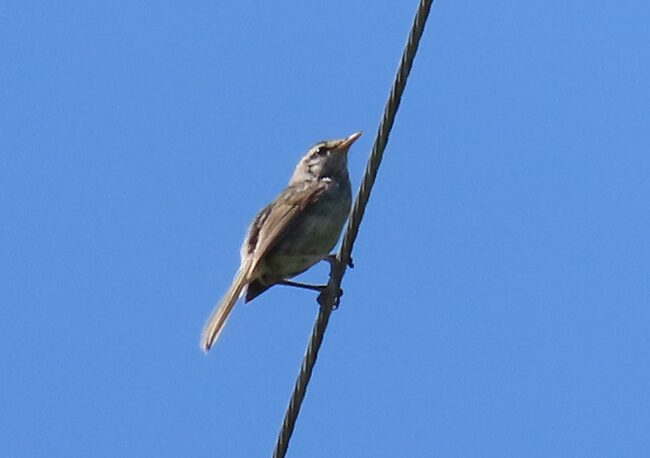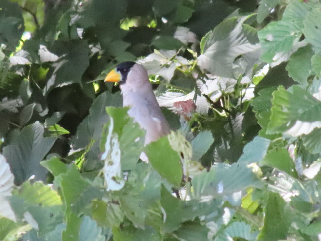 聴覚を頼りにターゲットを見つけることができたのがうれしくて写真を撮ってみましたが、朝の陽ざしがまぶしくいまいちなんの鳥かわからない。残念。