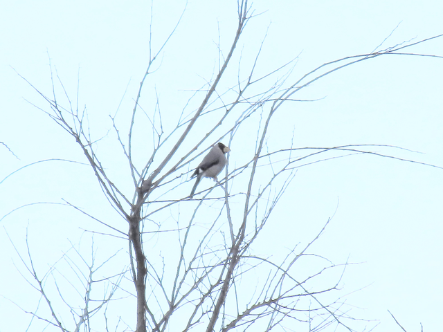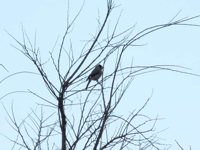 大きくて黄色いクチバシがかわいいですね。このイカルのような、図鑑をペラペラ眺めていると目にとまるようなキャラクターがはっきりした鳥はこうして実際に見つけられるとうれしい!! しかも、イカルってこんなにきれいな声で鳴くんですね。これは図鑑を読んでるだけではわからなかったな。