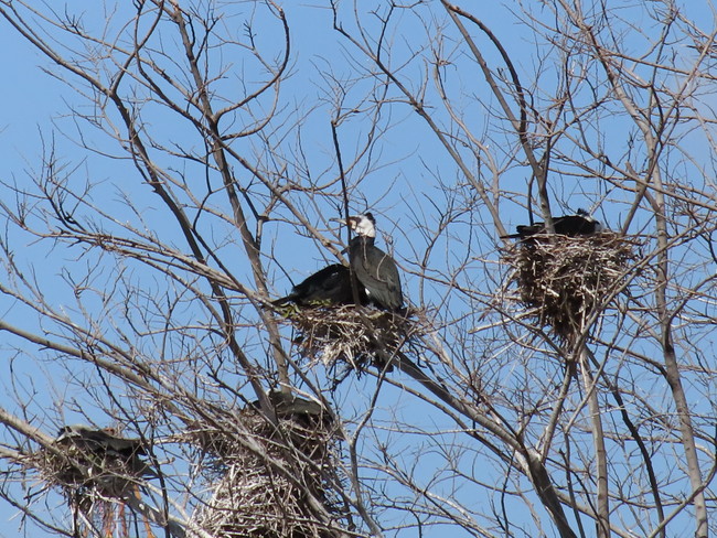 あらためて画像をごらんください。カワウのコロニーです。カワウがいっぱいいるなあ。このエリアだけで300羽ほどいるそうです。