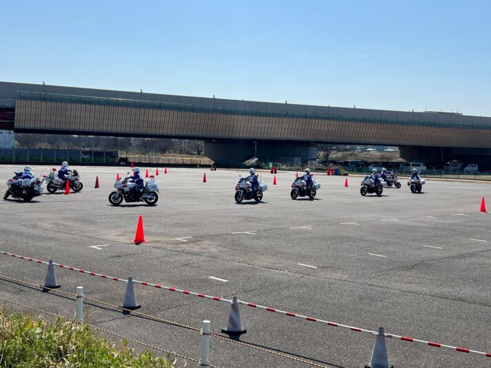 白バイが練習してるよ