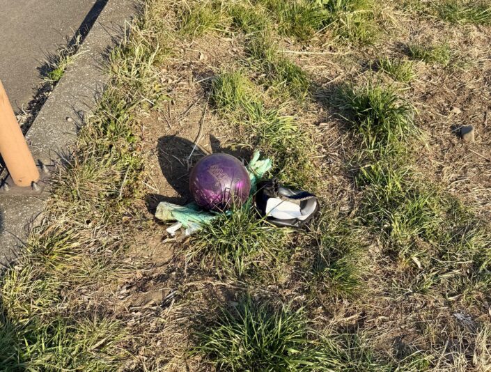 ボウリングの球が捨てられとる。