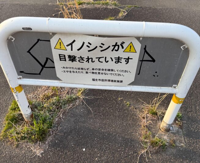 福生市から、マムシ注意がイノシシ注意にランクアップした