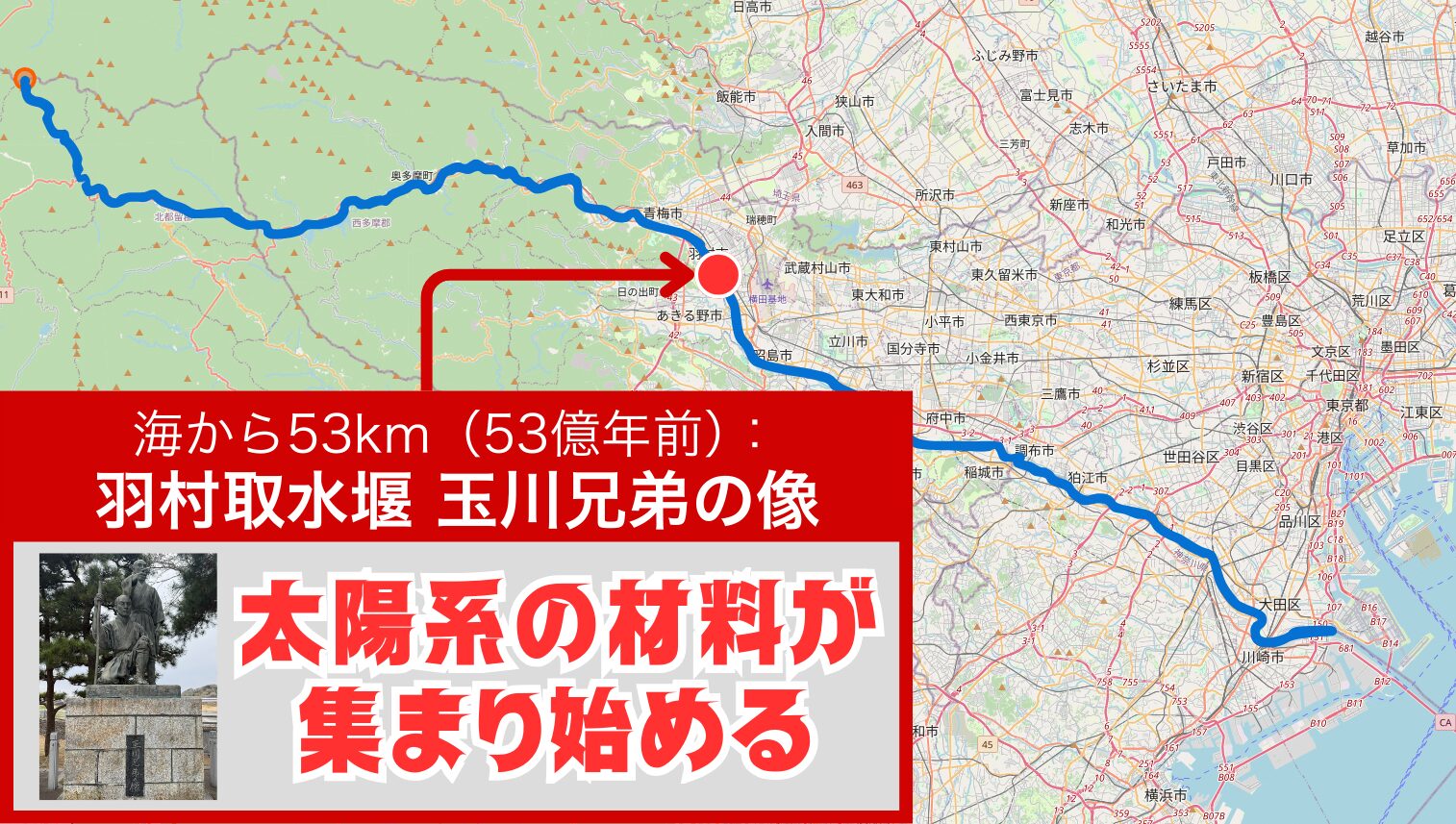 でもまだ70km、全体の半分なんだよね。多摩川って長いや