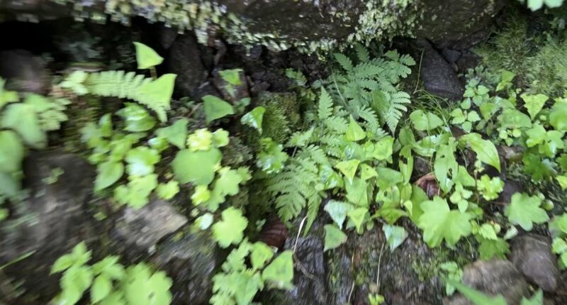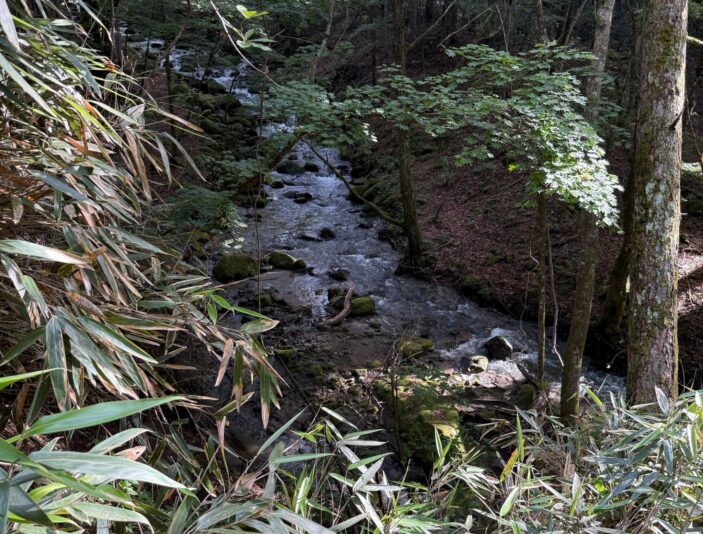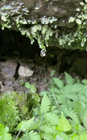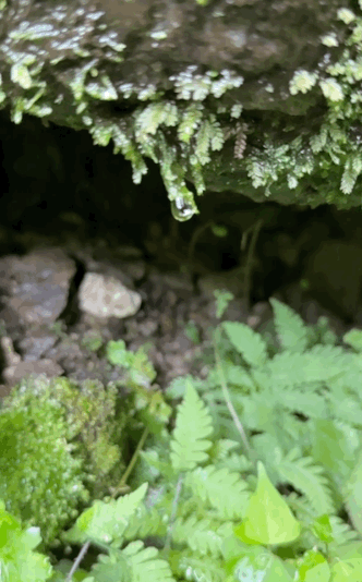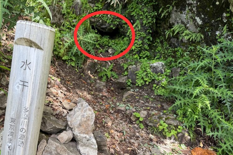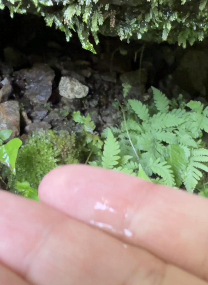 岩肌から水滴が落ちておるな!まさにあれが、多摩川のはじまりの一滴というわけだ