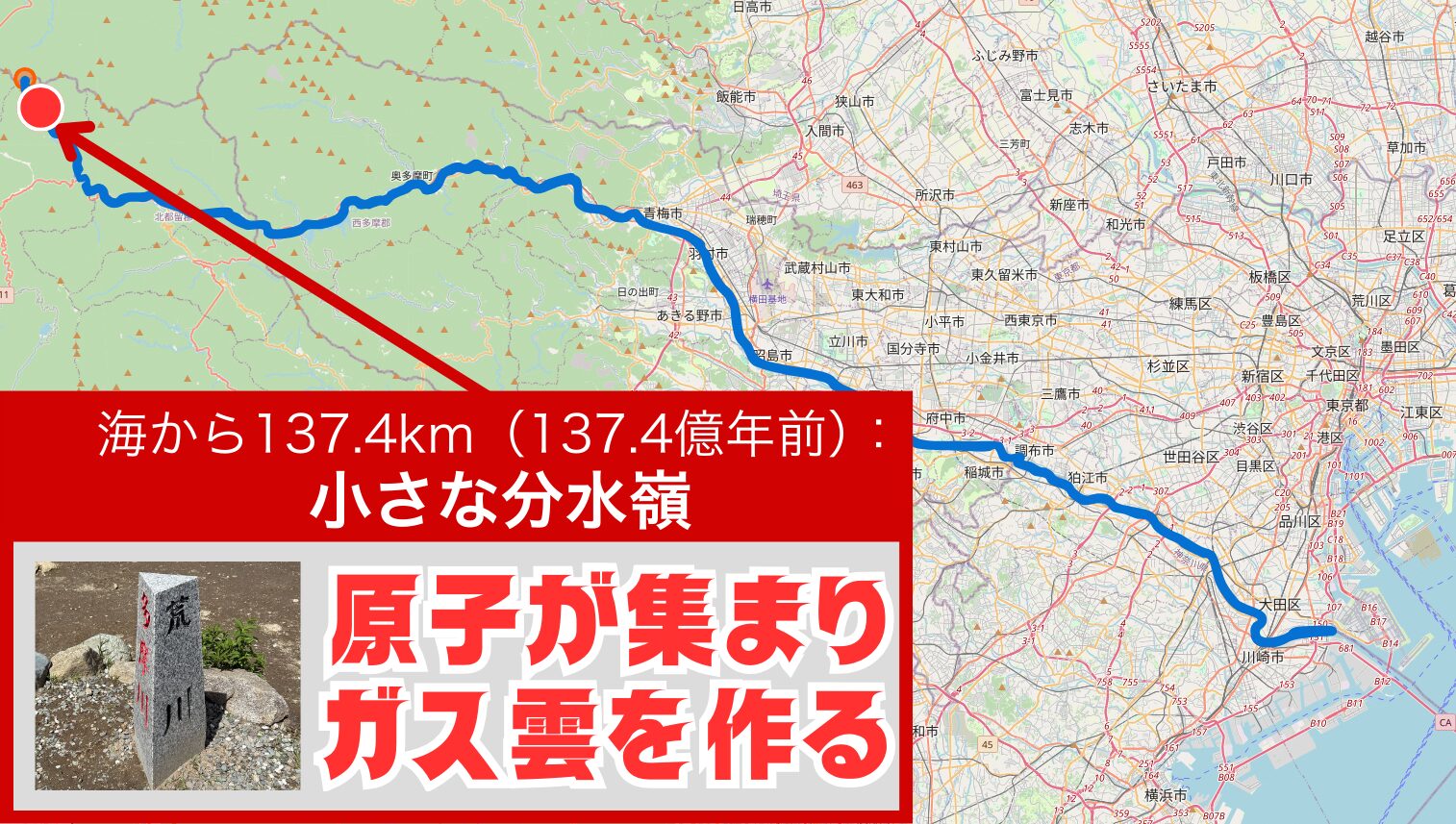 そうか、「多摩川」の側に降った雨だけが、多摩川に流れていくんだ!ほんのちょっとの落下地点の違いで、流れる先が大きく変わるんだな……