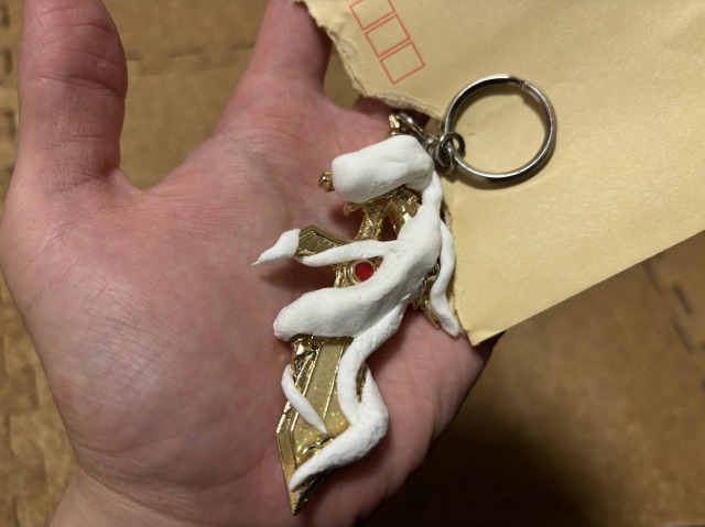 封筒の中身は、くねくねが剣に巻き付いたキーホルダーだった。
