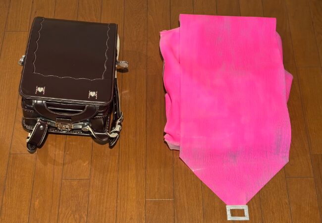 私のランドセルはとっくに捨ててしまっていたので、友人からランドセルを借りてきました。