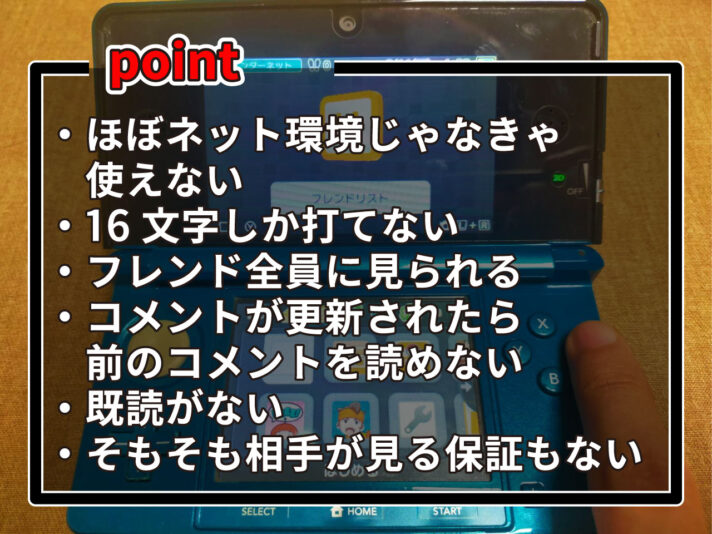 3DSには『フレンドリスト』というフレンドへ向け、16文字で挨拶を設定できるひとことコメントなる機能があるのですが……