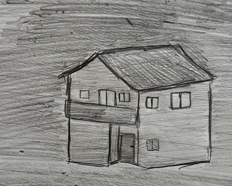 バスを降りてしばら歩くと、例の家が見えてくる。