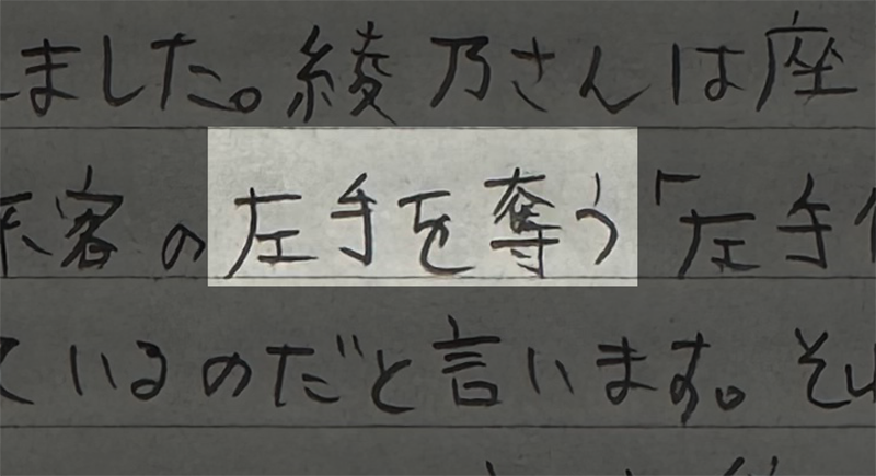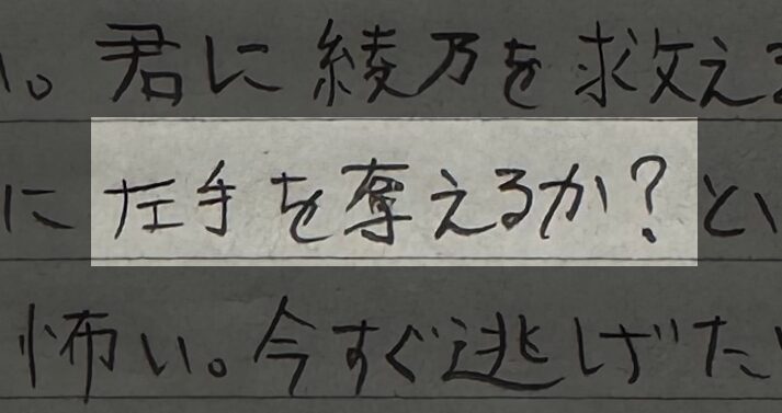 そして、潮が左手を切りつけたのも、利き手である右手で包丁を持ったからに過ぎない。